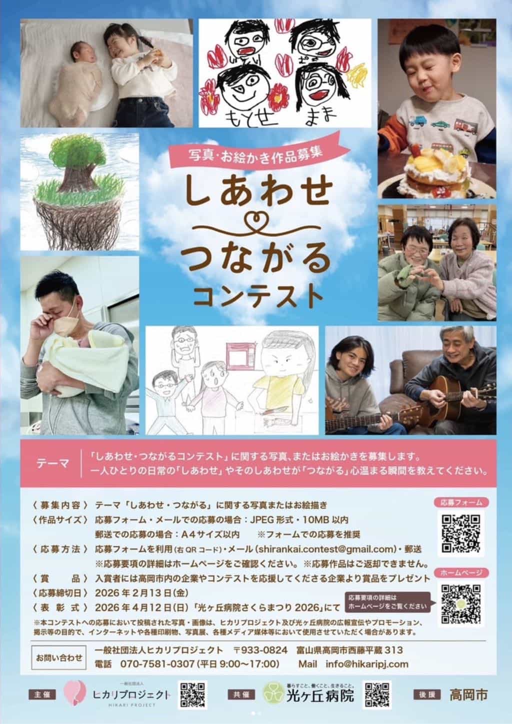 郵送 〒933-0824 高岡市西藤平蔵313 ヒカリプロジェクト「コンテスト作品在中」